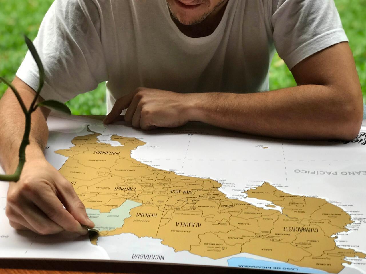 Desde mayo de este año empezaron a diseñar entre los dos un mapa raspable de Costa Rica. Lo lanzaron en noviembre y es uno de sus favoritos.