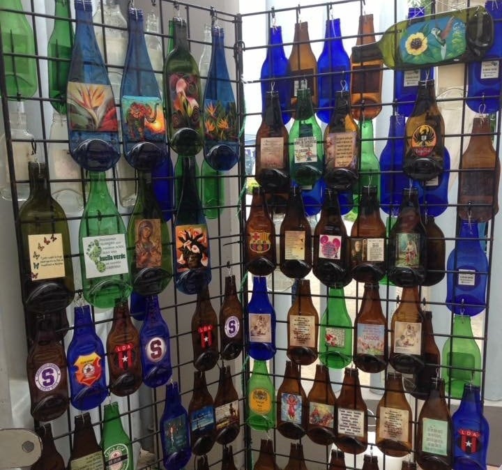 Las botellas que emplean para hacer los adornos son reutilizadas, pues un bar se las regala o las recolectan de personas que no las necesitan.