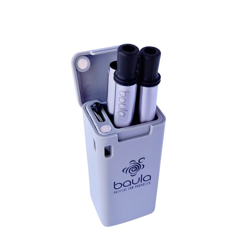 Bueno, la pajilla que ofrecen en Baula se puede doblar en cuatro partes y se lleva en un estuche como un llavero.