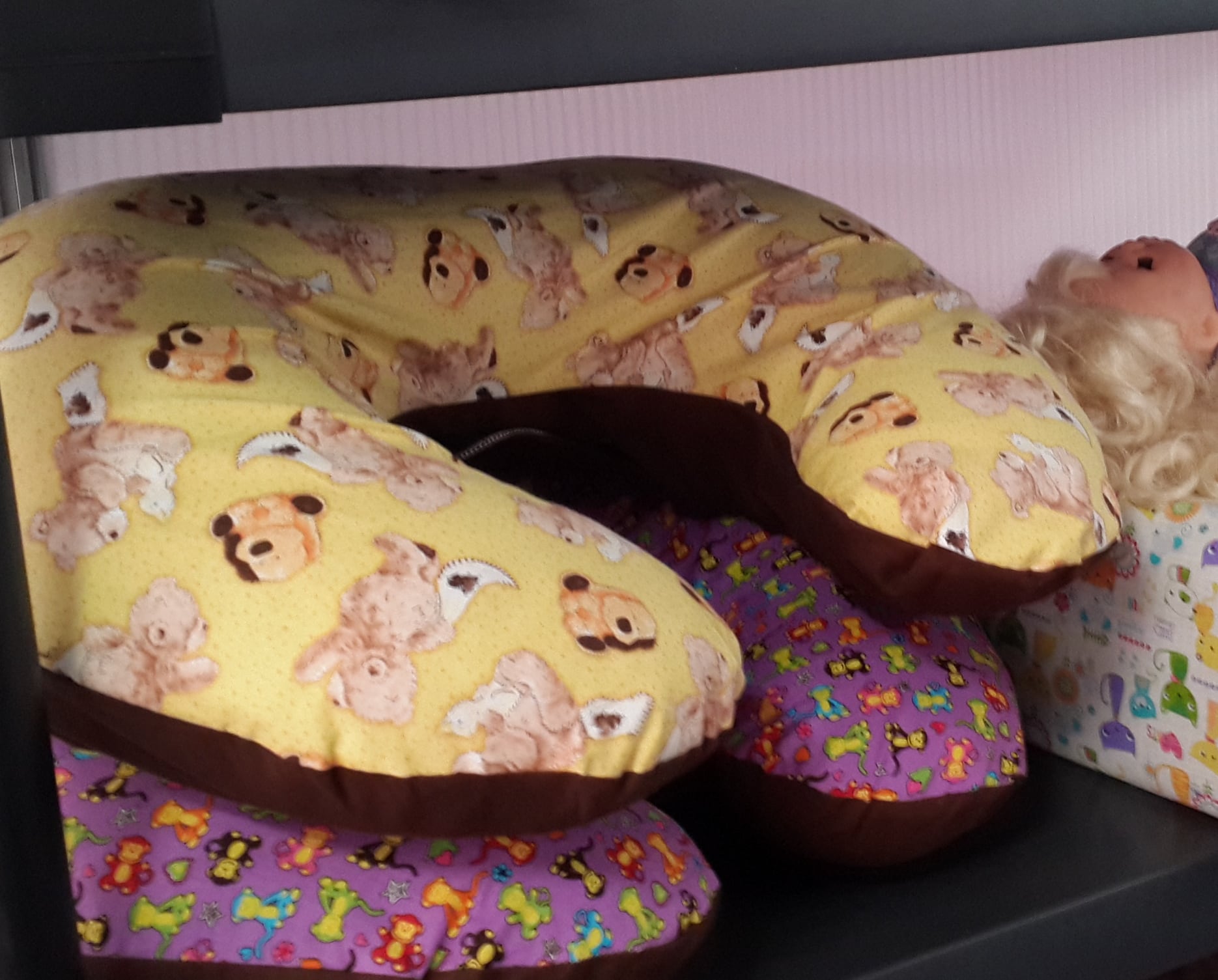La almohada se coloca alrededor de la cintura y el bebé se apoya sobre ella y así se le amamanta.