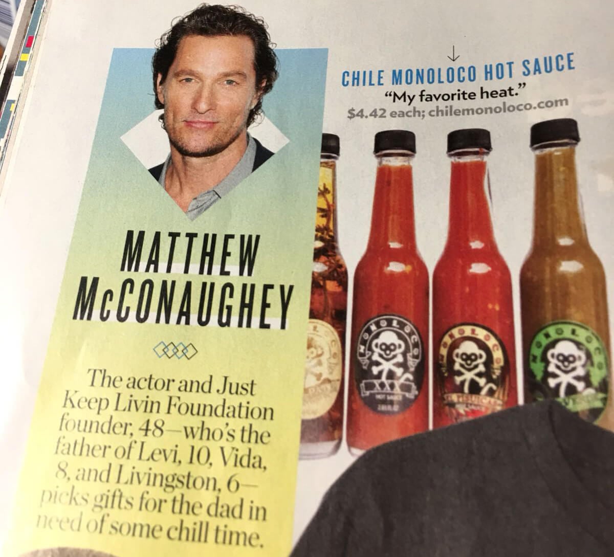 Un día Monoloco apareció en la revista People bajo una foto del actor ganador del Óscar, Matthew McConaughey, que recomendaba una de las salsas de la marca como un excelente regalo para el día del padre.
