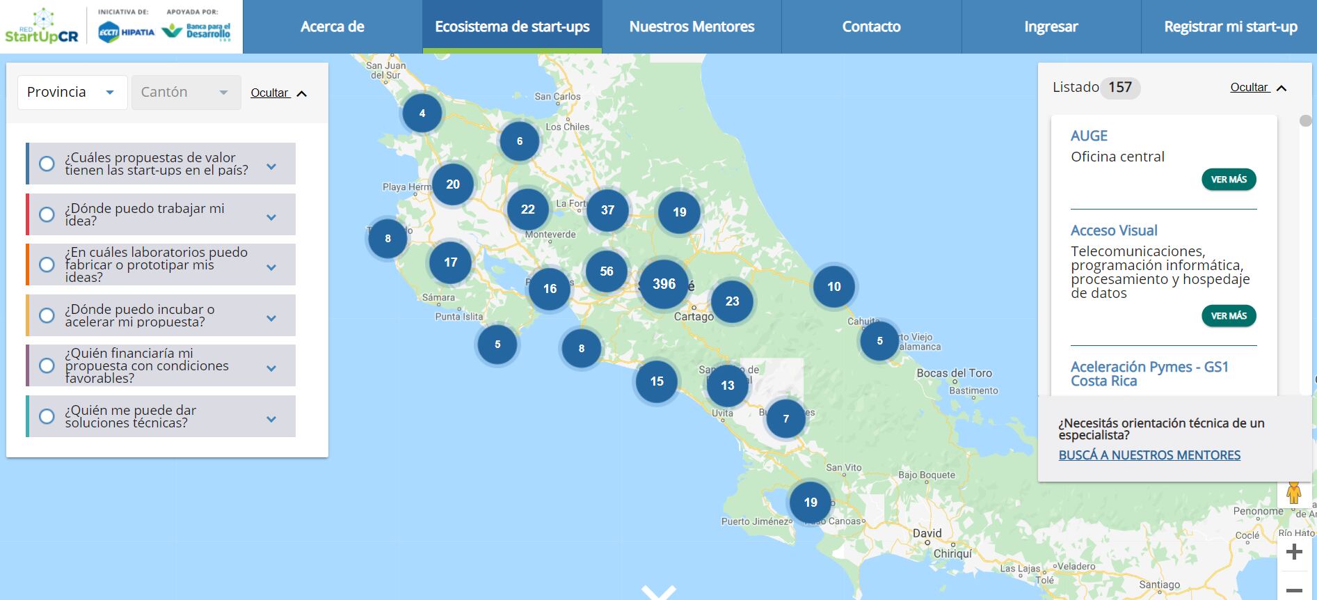 También se puede encontrar un listado de las incubadoras y aceleradoras del país, al igual que las opciones de financiamiento existentes en la actualidad y datos de instituciones, laboratorios y centros de investigación que brindan asesoría técnica.