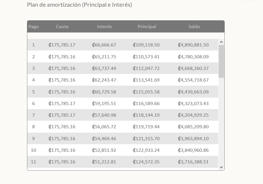 Si quiere crear un emprendimiento y requiriera un préstamo de ¢5 millones, a un plazo de 36 meses (que son 3 años), la cuota que debería pagar ascendería a ¢175.785 al mes, según la calculadora de crédito.