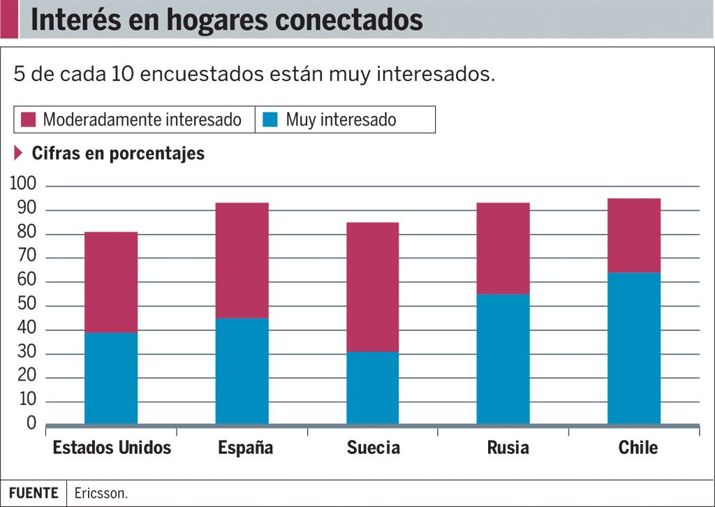 Según un estudio realizado por Ericsson ConsumerLab, llamado Connected Homes, en las regiones de Europa, América del Norte y Latinoamérica un 47% de los entrevistados tiene mucho interés en los hogares conectados. Otro 43% tiene un interés moderado en el tema.