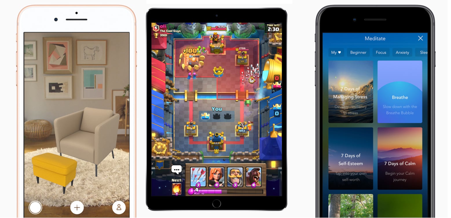 Entre las apps con AR, la firma destacó a la app Euclidean Lands, en juegos; a Filmr, para edición de foto y video; IKEA Place, en estilo de vida, e Insight Heart, en el campo médico.