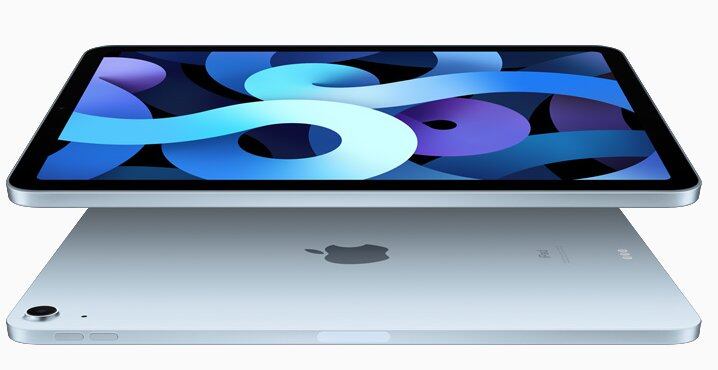Apple presentó también el iPad Air con pantalla Liquid Retina de 10.9 pulgadas, una nueva cámara trasera de 12MP, un sensor de identificación táctil de próxima generación, mejoras de cámara y audio, un nuevo sensor Touch ID integrado en el botón superior y el procesador A14 Bionic.