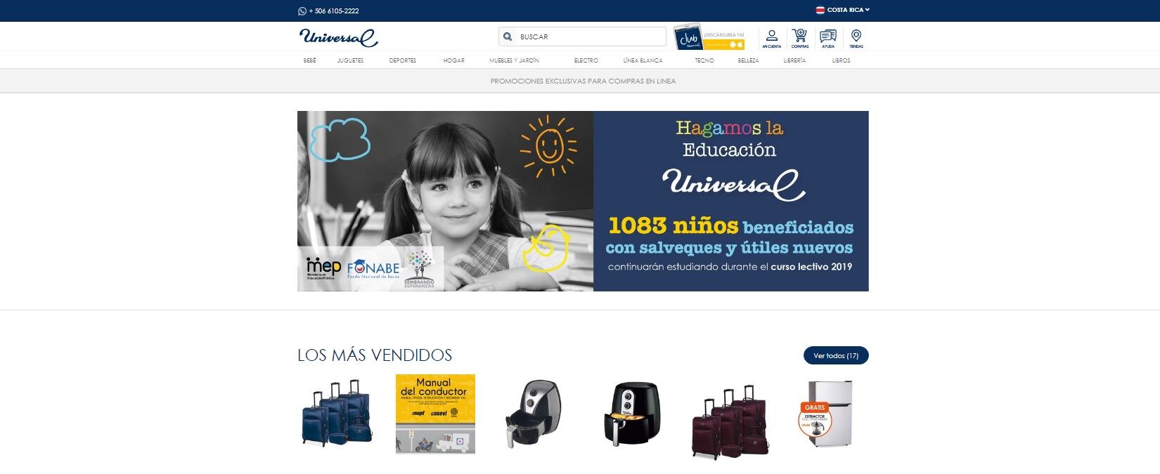 Tiendas Universal ofrece productos de diversas categorías: artículos para bebés, juguetes, deportes, hogar, muebles y jardín, electrodomésticos, línea blanca, tecnología, belleza, escolar y libros.