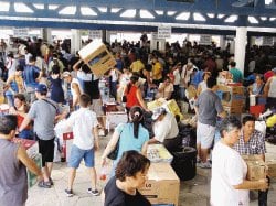 Al final deben pasar por un puesto de control de salida y llevar la mercadería adquirida a los camiones de transporte ubicados fuera del Depósito.