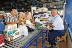 Actualmente pasa salir se debe pasar al puesto de control, donde un funcionario verifica las compras realizadas con la tarjeta física y da el visto bueno para que los compradores las trasladen hasta los camiones de transporte.