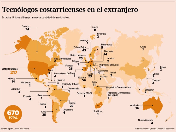 Estados Unidos es el país que más alberga costarricenses, según Hipatia son 217, seguido por Alemania (74) y España (54).