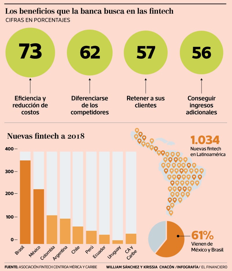 Sin embargo, es un riesgo que se debe enfrentar. Las autoridades financieras saben que los emprendimientos tecnológicos son una realidad de la que los bancos tradicionales no pueden escapar. Para el cierre del 2018, se registraron 1.034 nuevas fintech en Latinoamérica, según datos de Fintech Centroamérica.