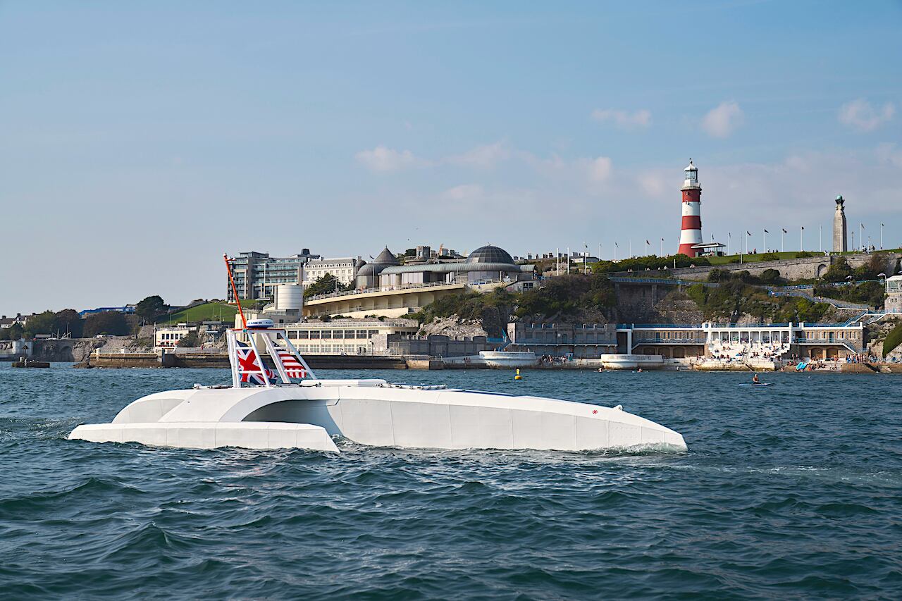 Capaz de tomar sus propias decisiones y navegar de forma totalmente autónoma, este pequeño trimarán de 9 toneladas y 15 metros de eslora, cubierto de paneles solares, se prepara para emprender una arriesgada travesía del Atlántico sin nadie a bordo con la ambición de revolucionar el estudio del mar.