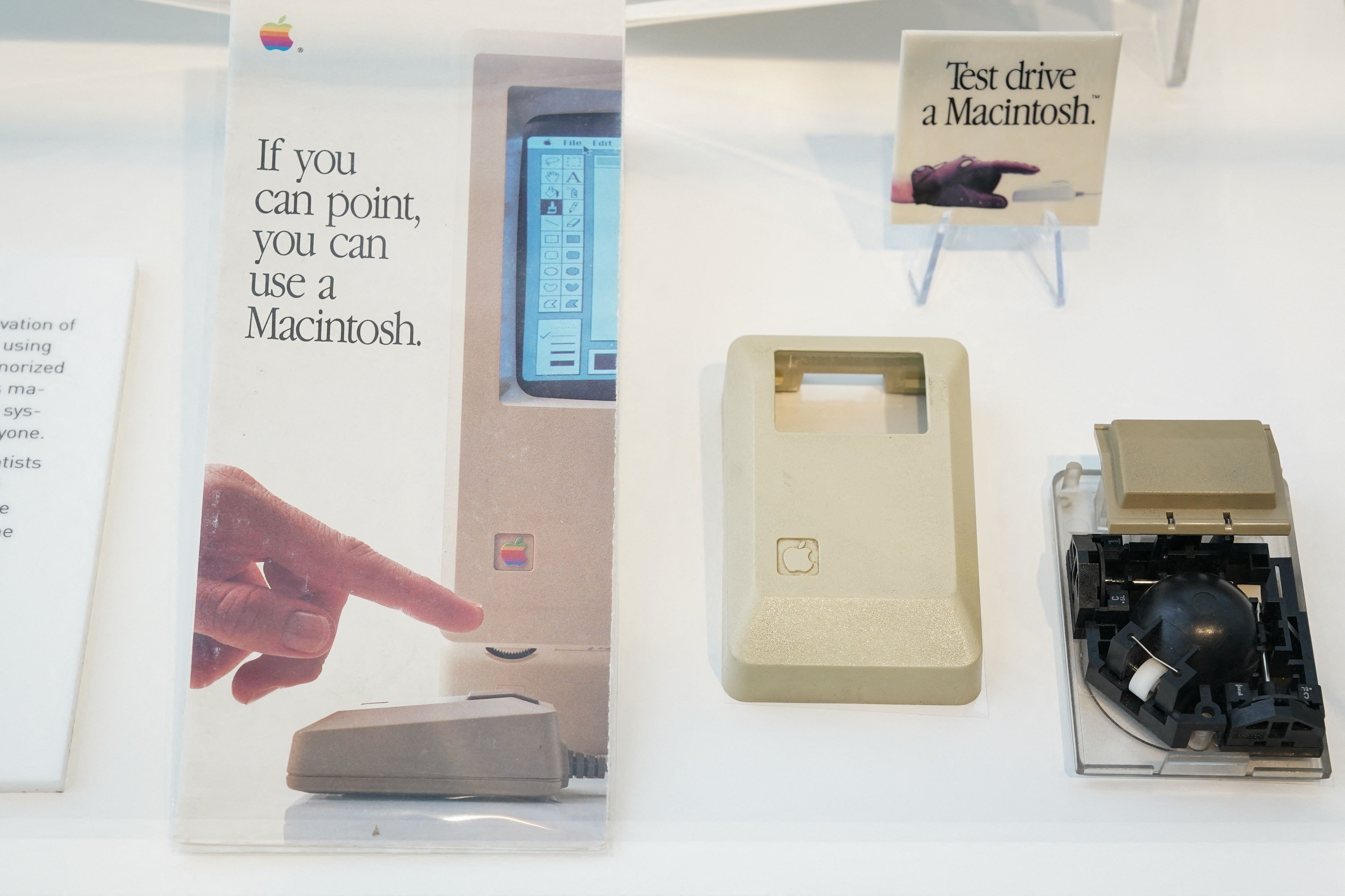 La Macintosh, equipo compacto con pantalla y disquetera, democratizó la computadora gracias a una interfaz que permitía a los usuarios pulsar simplemente sobre los iconos con un ratón, un dispositivo de los años 60 y que la Mac generalizó.
