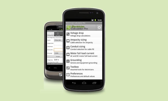 Se trata de Electrician Calculador Pro, que es capaz de encontrar la caída de voltaje, el tamaño del conduit, el conductor a tierra, y la capacitancia necesaria para corregir factores de potencia bajos, entre otros.