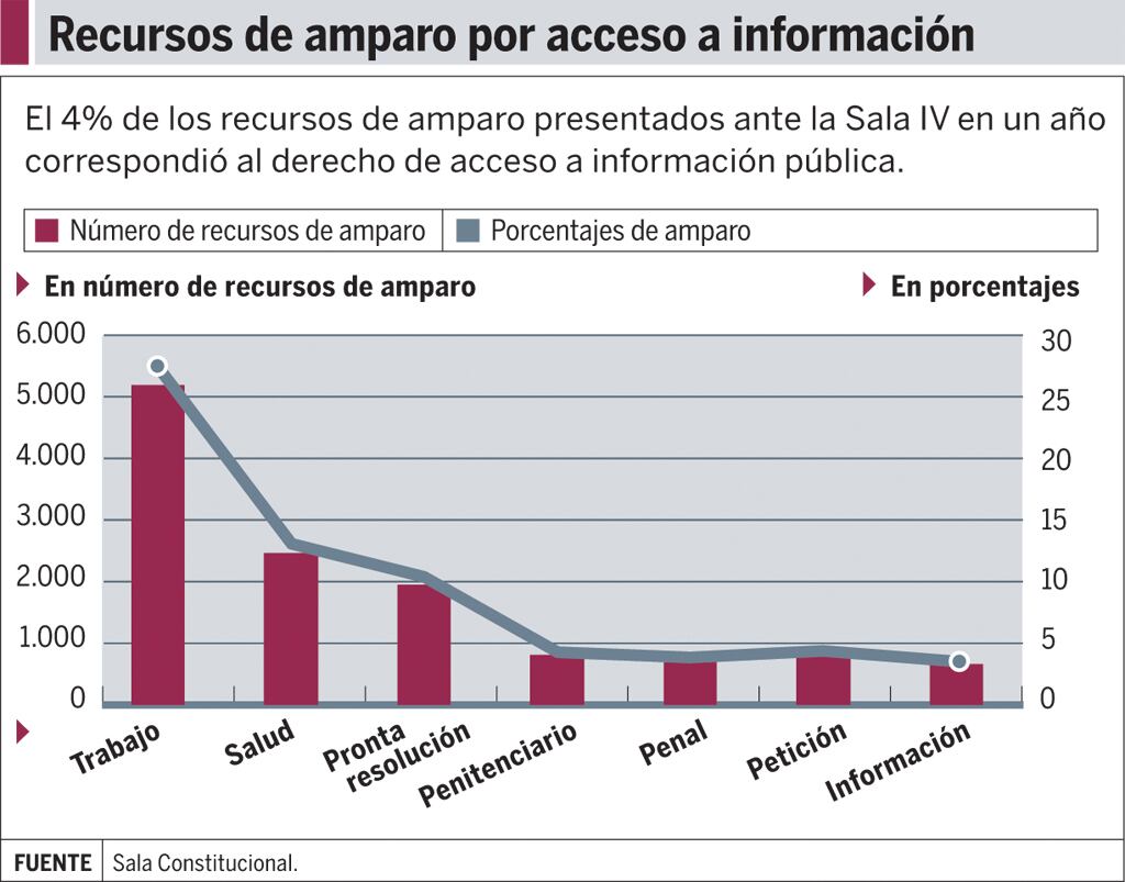 En el 2014, se presentaron un promedio de 13 recursos de amparo relacionados con acceso a la información por semana ante la Sala Constitucional.