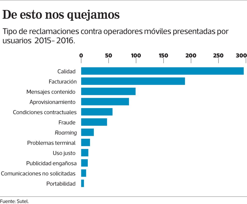 Es menos del 1% de los suscriptores de cada operador. Pero esos son los reclamos que los usuarios se ven obligados a llevar al regulador, pues las firmas no los resuelven.