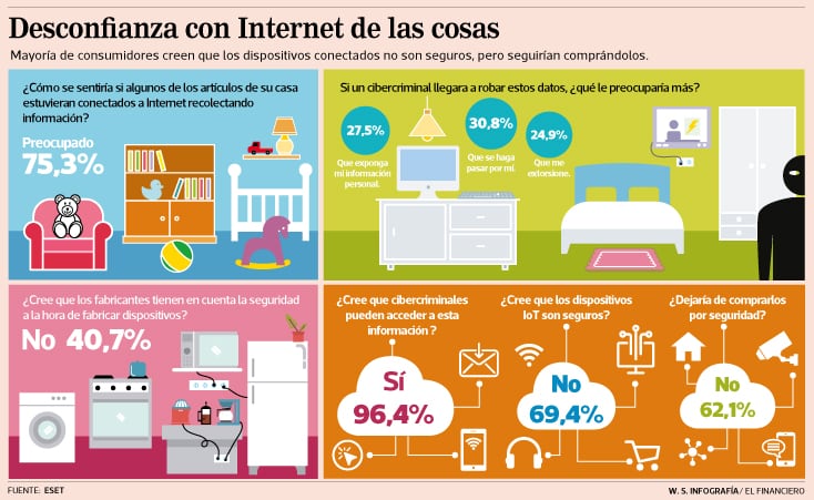 Una investigación realizada este año por la firma especializada ESET entre todos sus usuarios, mostró que un 96% de los encuestados considera que los datos que se generan dentro de su hogar pueden ser robados por cibercriminales.