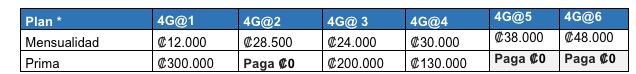 Si el cliente lo desea, también puede optar por un plan 4G@2 en el que se le financia la prima durante todo el plazo de contratación (24 meses) y paga ₡28.500 mensuales.