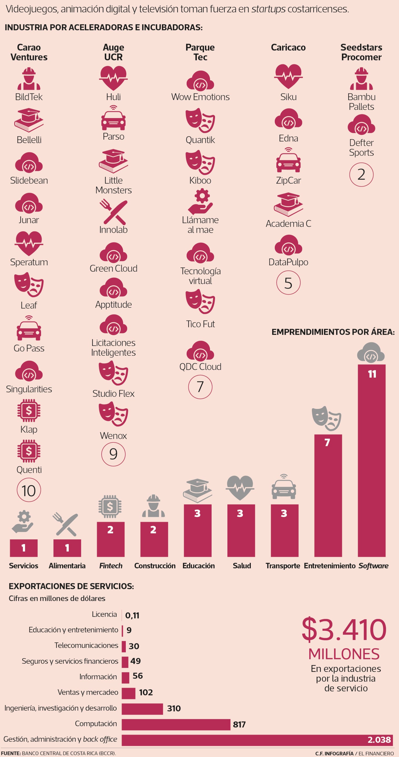 Animación digital, videojuegos e incluso televisión destacan dentro de la oferta de ideas que se gestan en lugares como Carao Ventures, Parque Tec y Auge, de la Universidad de Costa Rica (UCR).