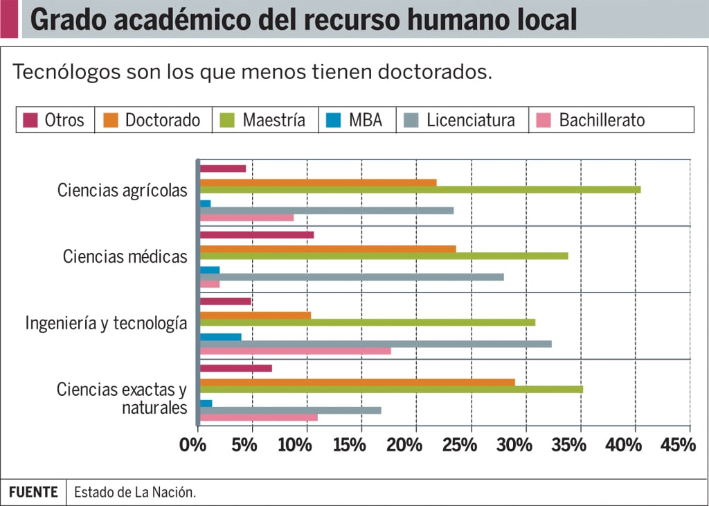Según datos del Programa del Estado de la Nación (PEN), las principales necesidades que tienen los tecnólogos son las deficiencias en infraestructura y el bajo grado de especialización.