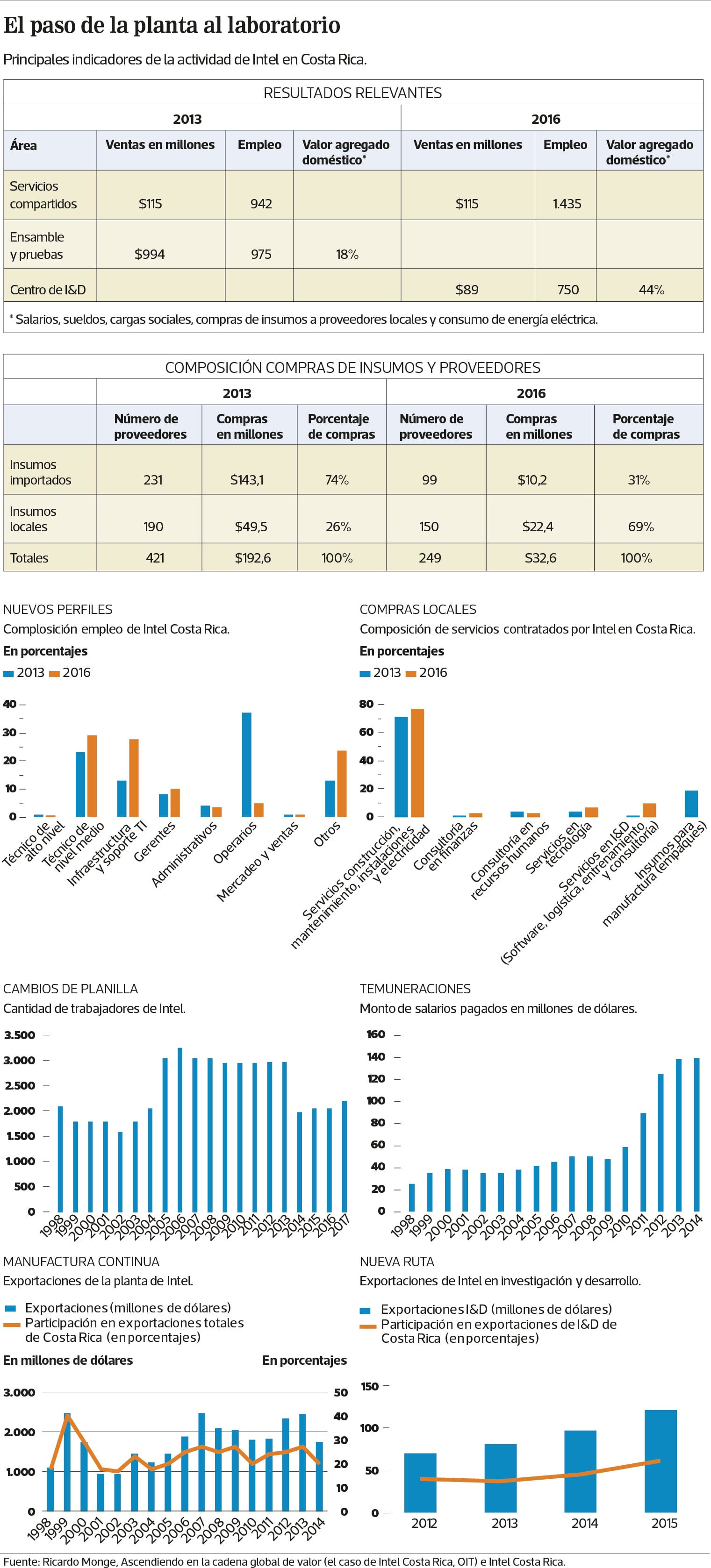 Ese valor agregado aumentó cuando Intel reconvirtió la planta en un centro de investigación y desarrollo. En el 2016 fue del 44% debido al incremento en el monto de la planilla y la compra de insumos y servicios locales (ver infografía "El paso de la planta al laboratorio").