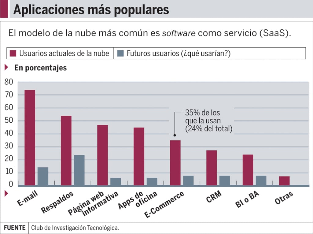 “El nivel de adopción de servicios en la nube (68%) parece ser similar al de otros países, pero cuándo analizamos más detalles en el reporte, hace suponer que la adopción del correo electrónico aún puede ser menor”, dijo Roberto Sasso, presidente del Club de Investigación Tecnológica.