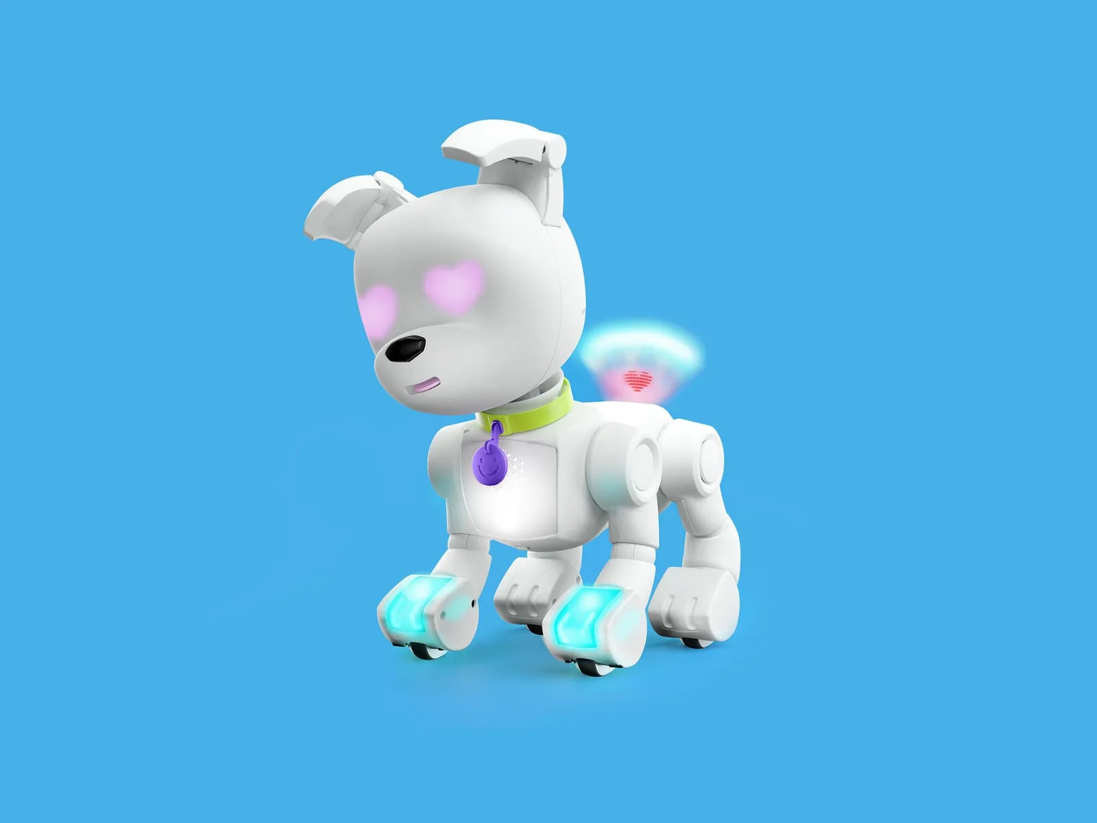 Les presento a Dog-E, un perro robot smart y cariñoso. Con sensores avanzados y accesorios inteligentes, Dog-E siempre está alerta y listo para jugar.