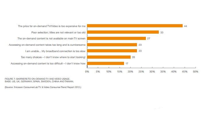 De hecho, otro de los descubrimientos del reporte es que la mayoría de los consumidores no quieren ver contenido de forma ilegal, pero que algunas veces recurren a esas vías por no tener alternativas legales que sean igual de atractivas. Además, el costo, la pobre selección de contenido y no poder acceder a contenido bajo demanda desde la principal pantalla de televisión son los principales obstáculos para poder pagar por contenido on demand. De acuerdo con el estudio, los consumidores están más dispuestos a pagar por el contenido para verlo en las pantallas más grandes.