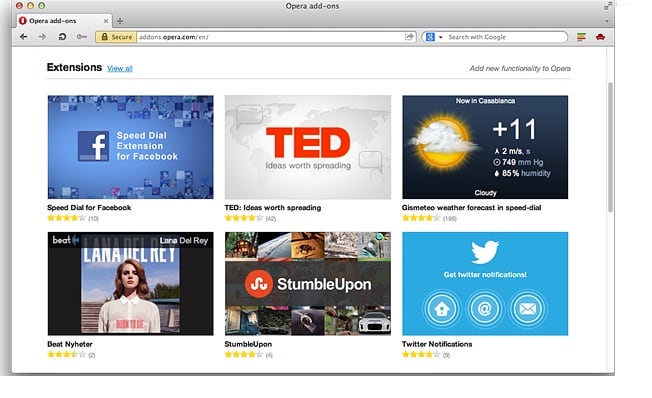 Por ejemplo, hay nuevas extensiones sociales (para acceder más rápidamente a las actualizaciones de Twitter y Facebook), de estilo de vida (que conectan con StumbleUpon y Pinterest), de negocios y productividad, de noticias y tiempo atomosférico, etc. Además, la función Speed Dial le facilita al usuario llegar a sus favoritos y atajos.