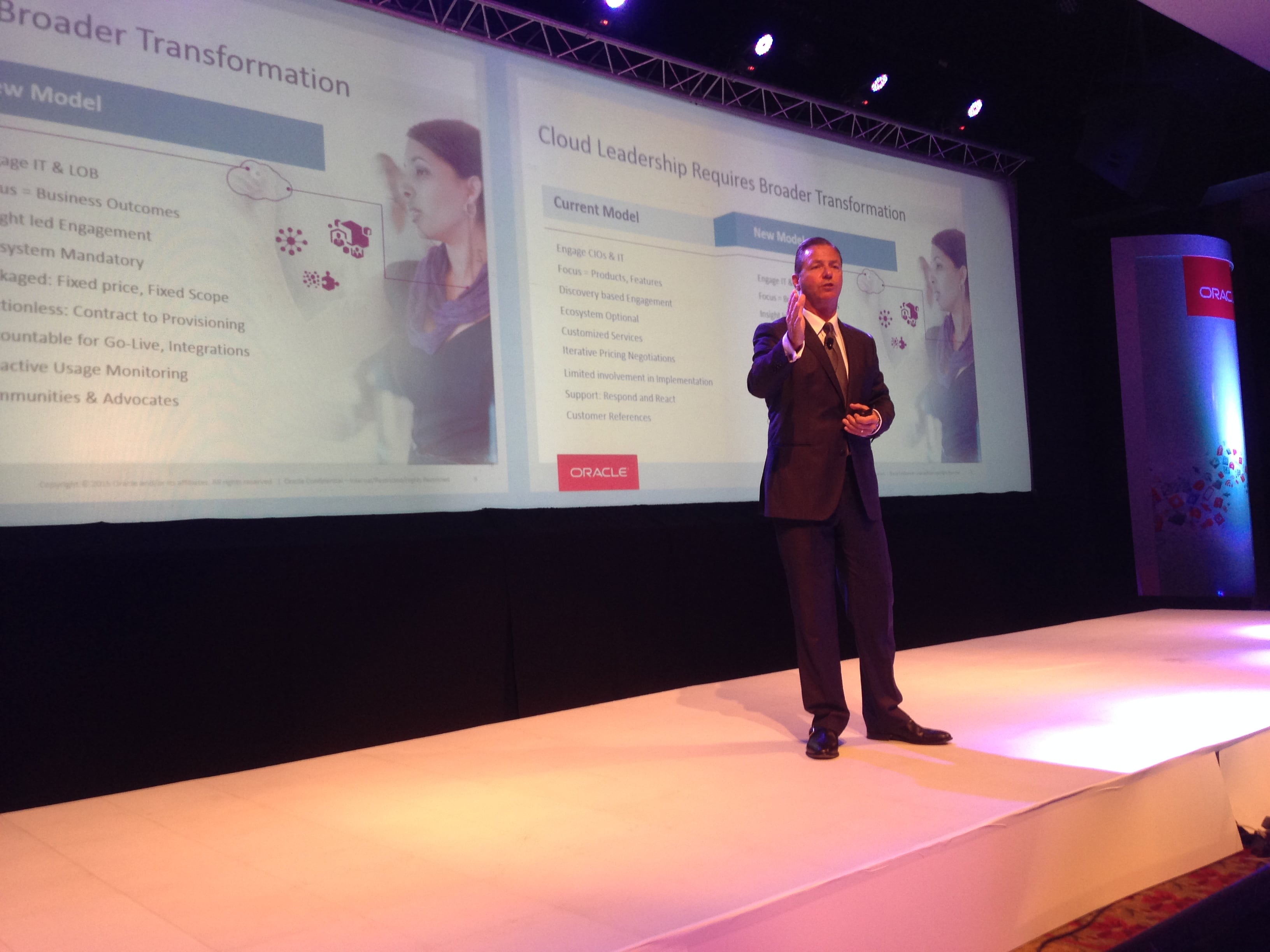 Shawn Price, vicepresidente senior de Oracle, explicó en la conferencia inaugural que las soluciones a través de la nube implican reducciones de hasta un tercio de los costos en comparación de los sistemas instalados.