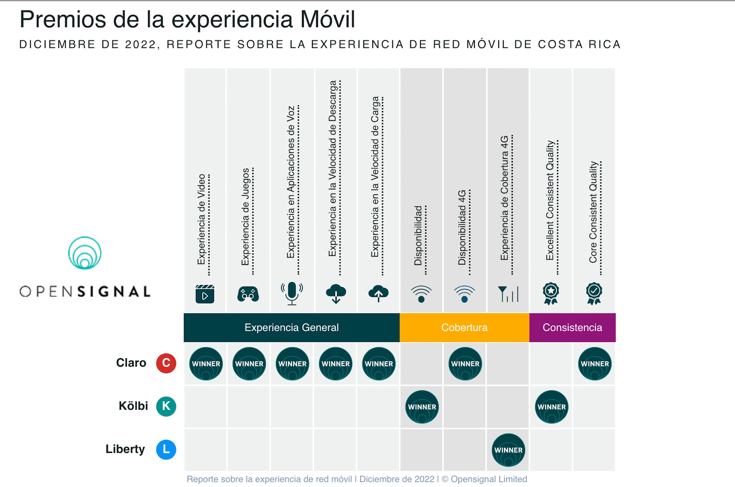 Opensignal indicó que Claro es el operador a vencer en Costa Rica, pues es el que se lleva la mayor parte de los “premios” y con el cual los usuarios de la app de Opensignal lograron las mayores velocidades de carga y descarga.