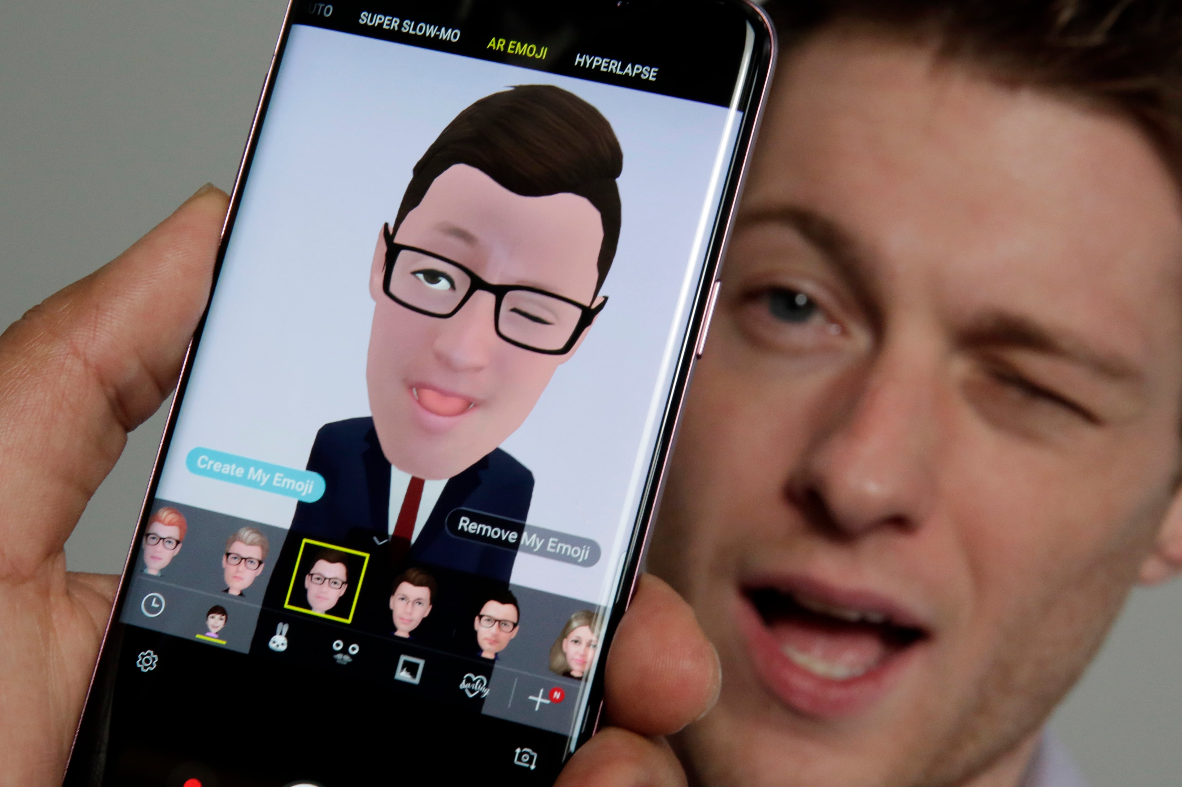 - AR Emoji: Samsung hace posible que los usuarios creen un Emoji que parece, suena y actúa exactamente como ellos. El AR Emoji usa un algoritmo de aprendizaje de máquina basado en datos, que analiza una imagen en 2D del usuario y mapea más de 100 características faciales para crear un modelo en 3D que refleja e imita expresiones como parpadeos e inclinación de la cabeza para una personalización verdadera. El AR Emoji comparte tus sentimientos de la vida real no solo en video, sino también con una gama de stickers y usa un formato estándar de archivo AGIF para que los usuarios puedan compartir sus emojis por la mayoría de las plataformas de mensajería.