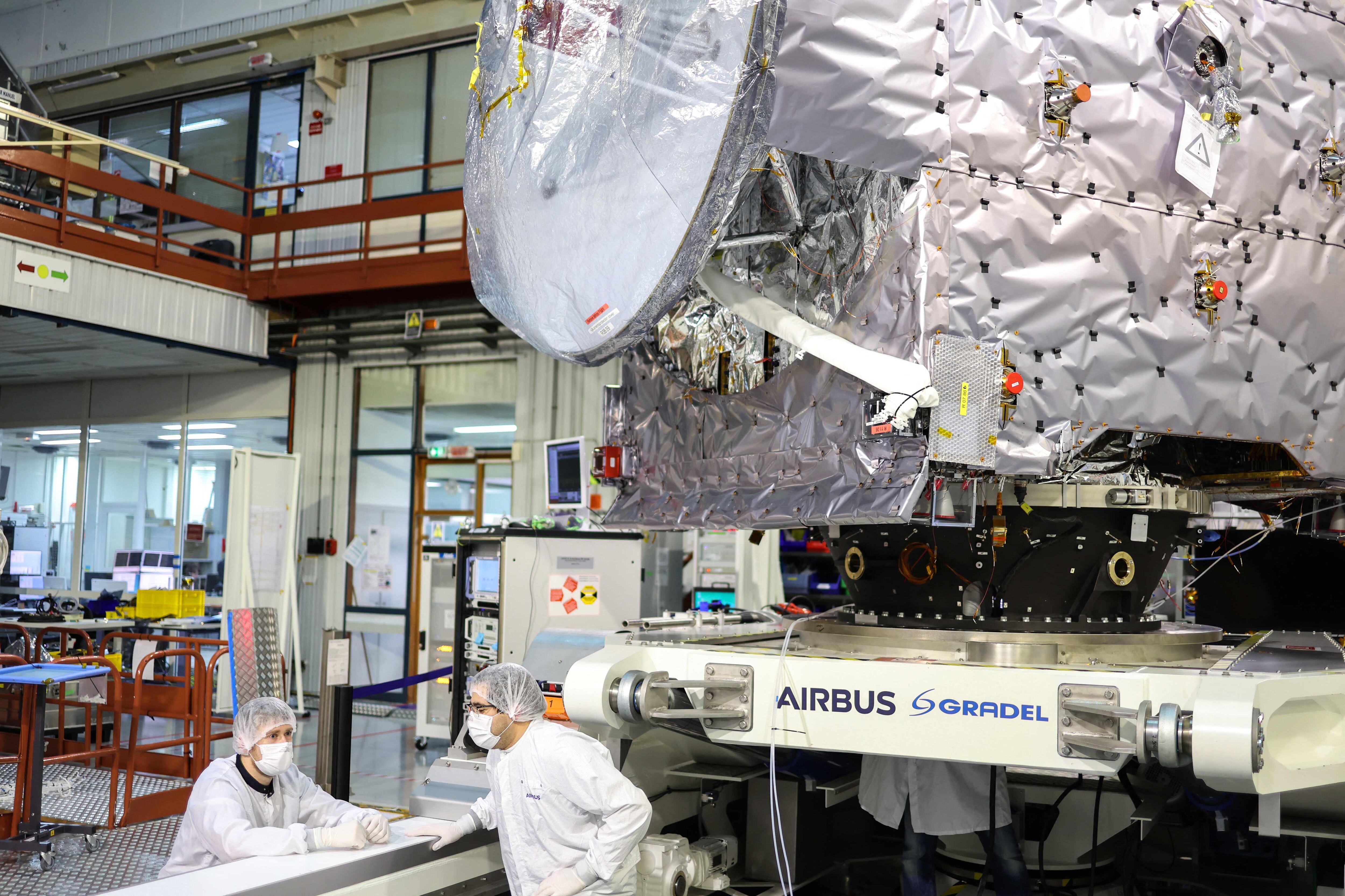 La sonda de más de seis toneladas está instalada, con sus paneles solares replegados, en la parte superior del lanzador. Se separará del cohete 28 minutos después del despegue, a 1.500 km de altura, precisó el presidente de Arianespace, Stéphane Israël.
