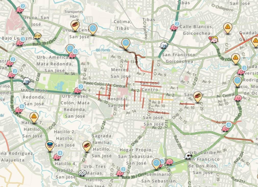 El viceministro de Transporte Terrestre y Seguridad Vial, Sebastián Urbina, informó que San José forma parte de un grupo de 10 ciudades alrededor del mundo que conforman un plan piloto para el intercambio de información entre Waze (que se alimenta de los reportes de los usuarios, entre otras fuentes) y las autoridades de cada ciudad, entre las que se encuentran ciudades como Río de Janeiro en Brasil y Barcelona en España.